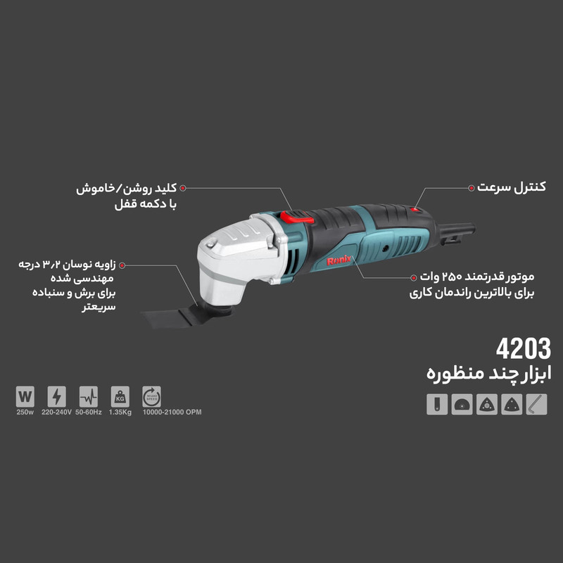 آچار الن / 2تیغه برش / صفحه سنباده مثلثی / سه عدد سنباده